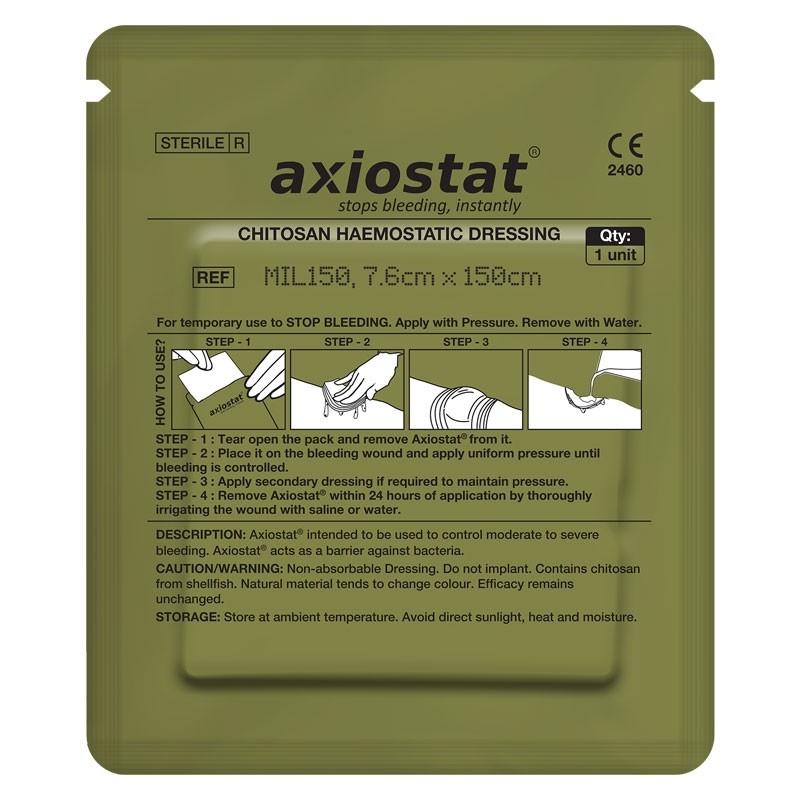 Le Compresse Z-Fold hémostatique MIL150 8 x 150 cm Axiostat est un produit de la marque Axiostat conçu pour répondre aux exigences du domaine Equipement divers.