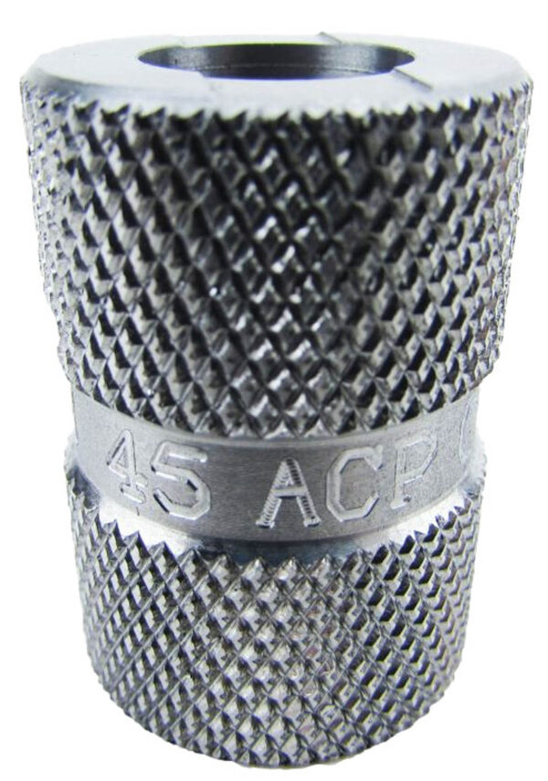 La jauge est dimensionnée aux cotes SAAMI standard .45 ACP. Pour les charges +P, les dimensions extérieures de la cartouche restent identiques.