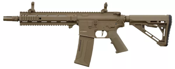 AEG L119A2 Gen4 ambidextre coloris Tan, full métal. Commandes bilatérales, finition FDE. Parfaite pour milsim et airsoft en environnement désertique.