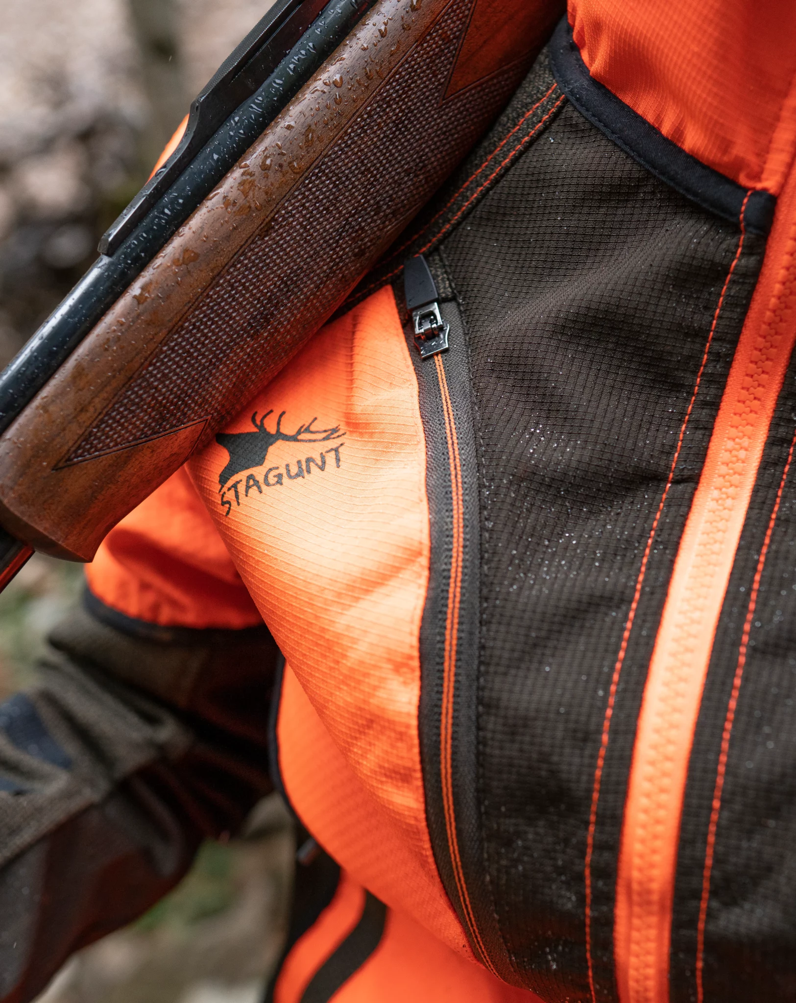Le tissu polyester 100 % à 190 g/m² offre le juste équilibre : assez dense pour résister à l’accroche et aux branchages, assez léger pour ne pas alourdir en effort prolongé. L’enduit PU garantit l’étanchéité lors de pluies soutenues. La respirabilité MVTR de 3 000 g/m²/24h évite l’accumulation d’humidité interne — crucial en traque active où l’effort génère de la transpiration.