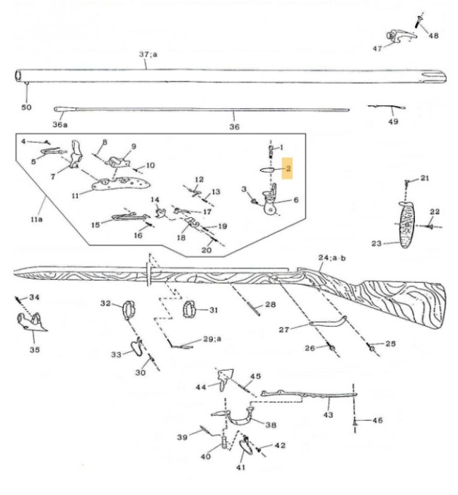 Retrouvez diverses pièces détachées pour fusil 1777 Pedersoli. Pièce d’origine Davide PEDERSOLI & C, elle s’intègre parfaitement dans l’assemblage d’origine de votre arme. Nous recommandons de faire appel à un armurier qualifié pour le montage si vous n’êtes pas familier avec le démontage de votre arme. L’utilisation de pièces d’origine est la garantie d’un fonctionnement sûr et conforme aux normes de sécurité en vigueur.