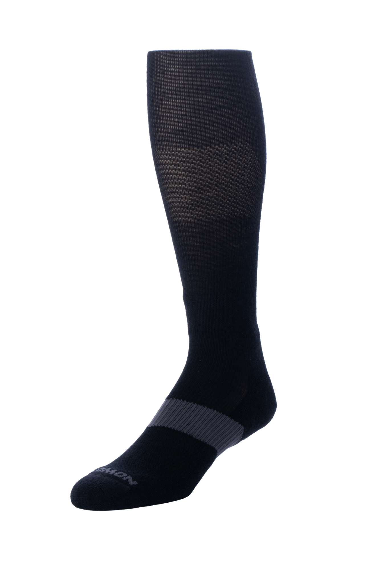 La tige montante jusqu’au genou épouse naturellement le mollet sans friction. Finition élastique en haut : zéro glissement, zéro coupure. Construction sans couture au talon, point critique de pression.