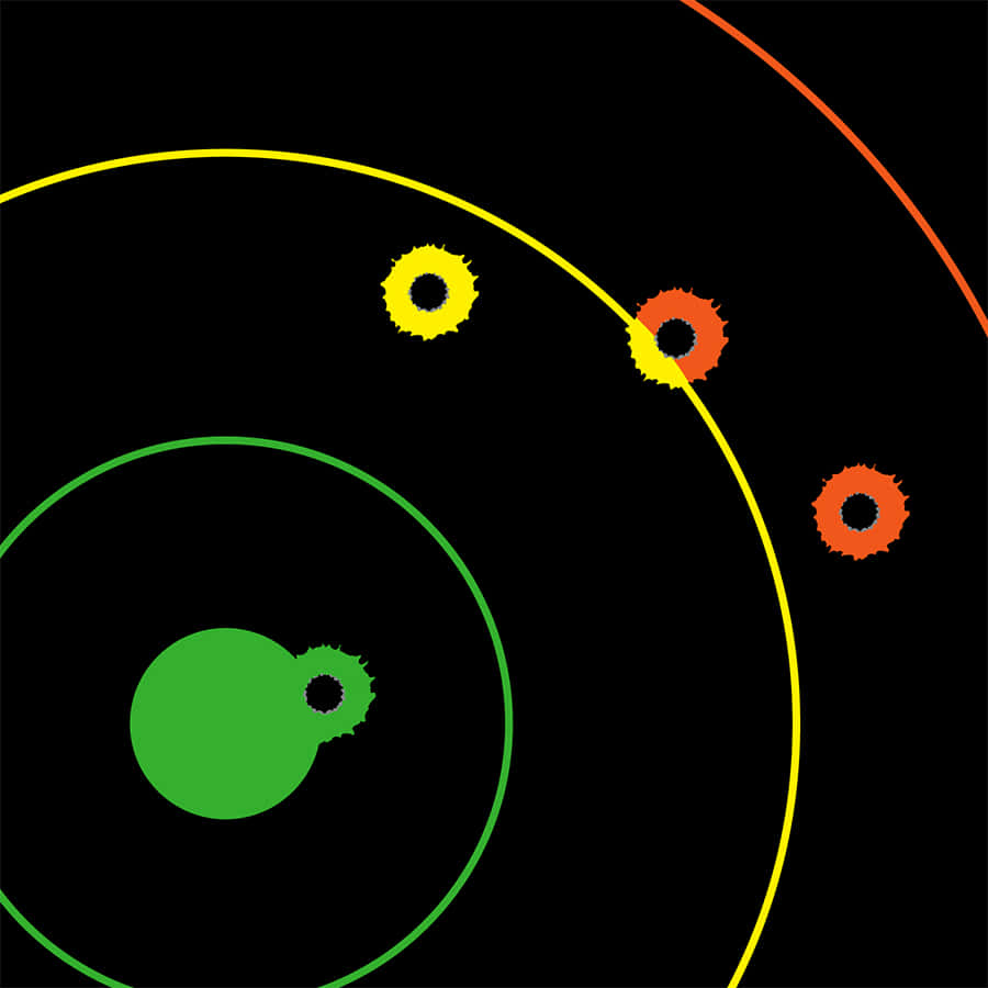 Résultats immédiats, pas besoin de se déplacer ou d'utiliser des jumelles, les impacts apparaissent en jaune ultra-visible !Cibles en papier cartonné, à fixer sur un support de tir.Parfaite pour tous les calibres, de l'air comprimé au 44 magnum !Livrée avec des pastilles noires pour masquer les impacts…et redevenir jaune si vous touchez au même endroit !Chaque zone de la cible réagit avec une couleur spécifique.Vert : c'est un coup en plein centreJaune, orange : de plus en plus loin !Rose : il faut vraiment s'améliorer !!