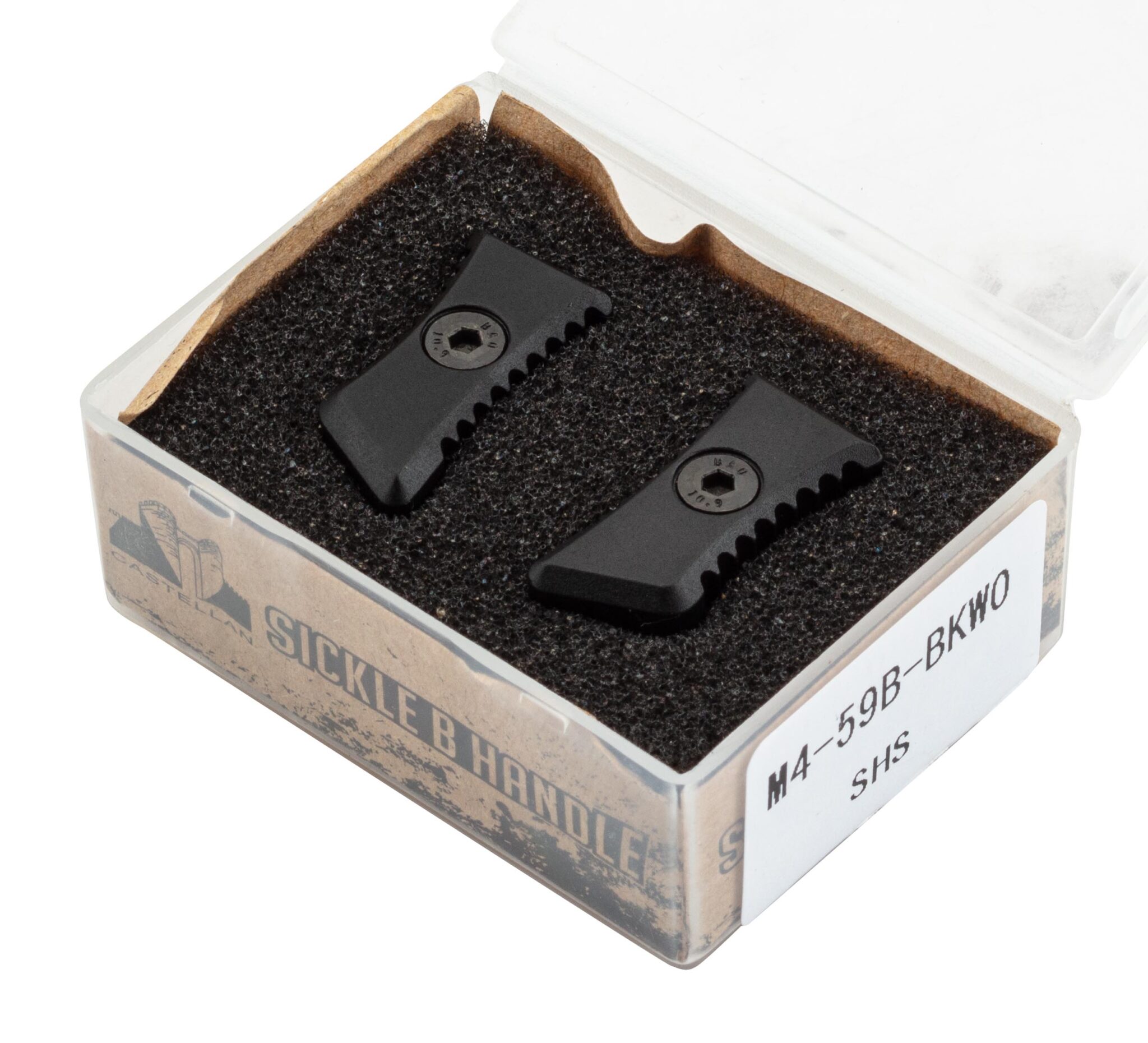 Paire de grip octogonaux pour levier d'armement M4. Fabriqué en Aluminium CNC, finition anodisée.