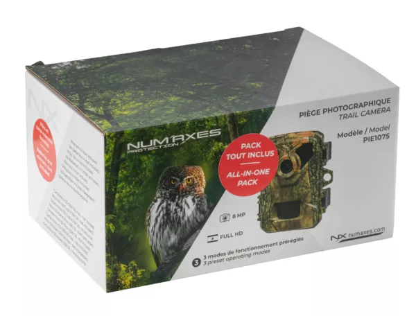 Le piège photographique Num’Axes PIE1075 en pack avec carte 32 Go est prêt à l’emploi dès la sortie de la boîte. Conçu pour les chasseurs et les observateurs de la nature, il combine discrétion, réactivité et autonomie pour capturer les passages de gibier sans présence humaine. Le pack inclut la carte mémoire, ce qui évite de se poser des questions au moment de l’installation.
