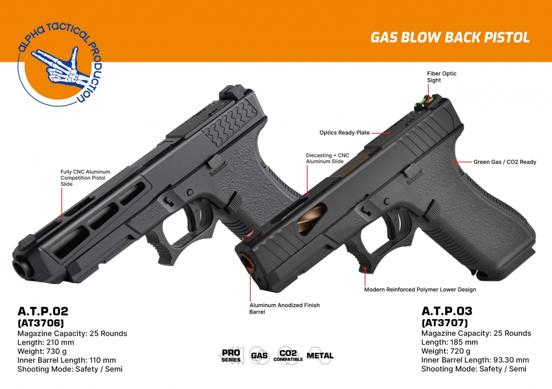 Conçu pour l’airsoft sportif et les exercices de tir de précision pistolier, l’ATP 02 s’adapte aussi bien aux joueurs confirmés qu’aux utilisateurs avancés cherchant un pistolet fiable à l’ergonomie soignée.